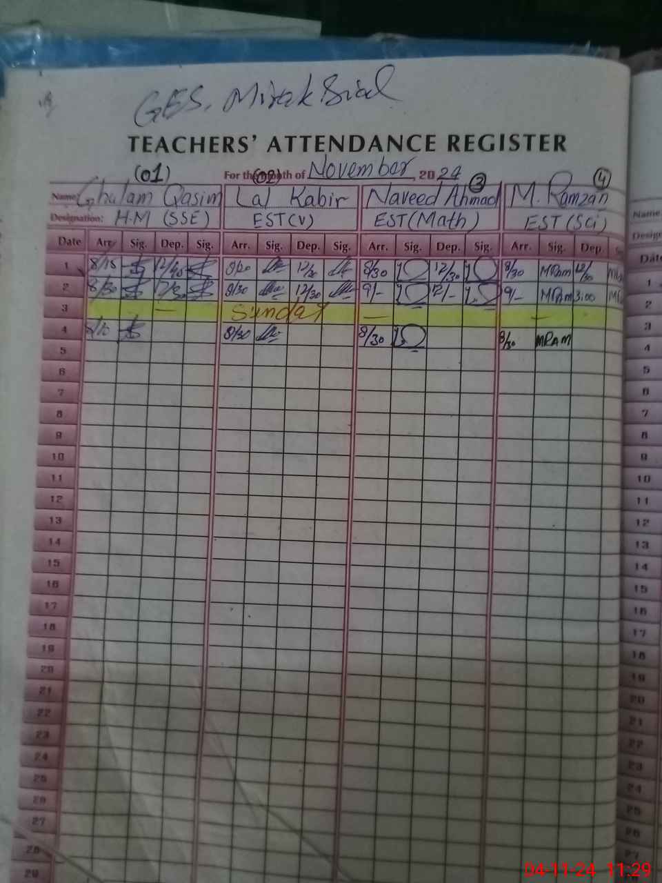 | 33**** | Wa**** UlSe**** | 3 | 1 | 0 | 0 | 0 | 0 | 0 | 0 | 0 | 0 | 0 | Exam Duty |