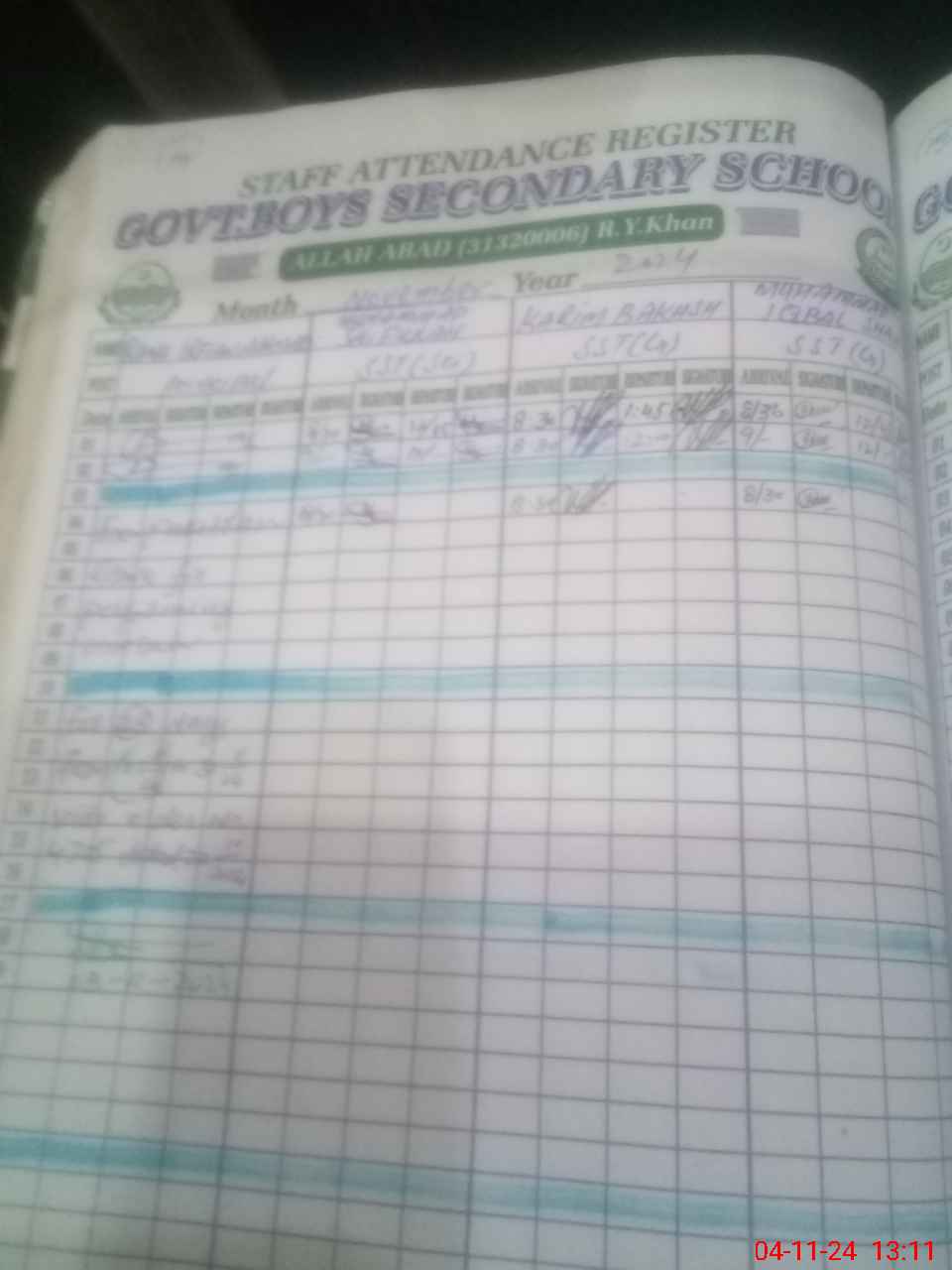 | CNIC | Full Name | Designation | R/C | Absence During Last Calender Month |