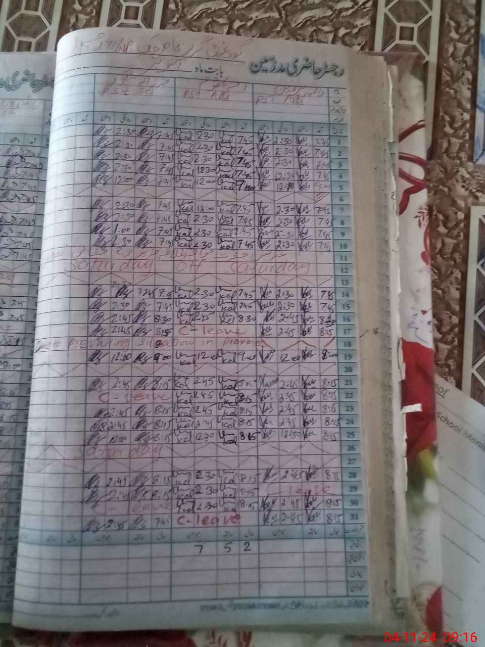 | Leave | Duty | Absent | Maternity | Medical | Ex- Pak |