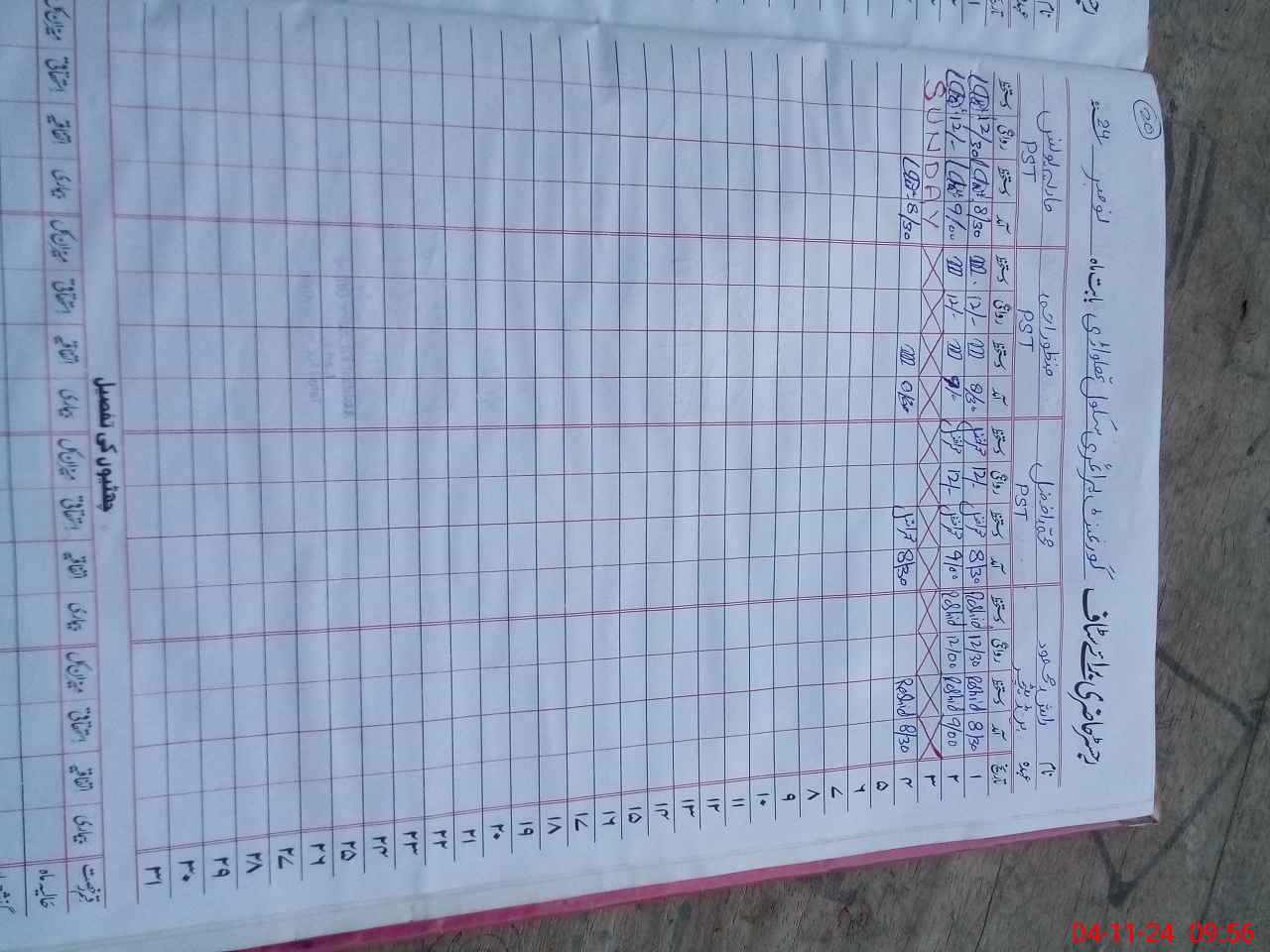 | CNIC | Full Name | Designation | R/C | Absence During Last Calender Month |