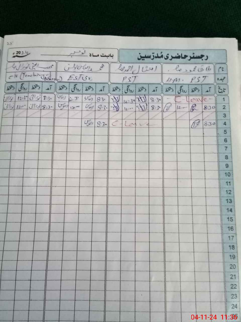 | CNIC | Full Name | Designation | R/C | Absence During Last Calender Month |