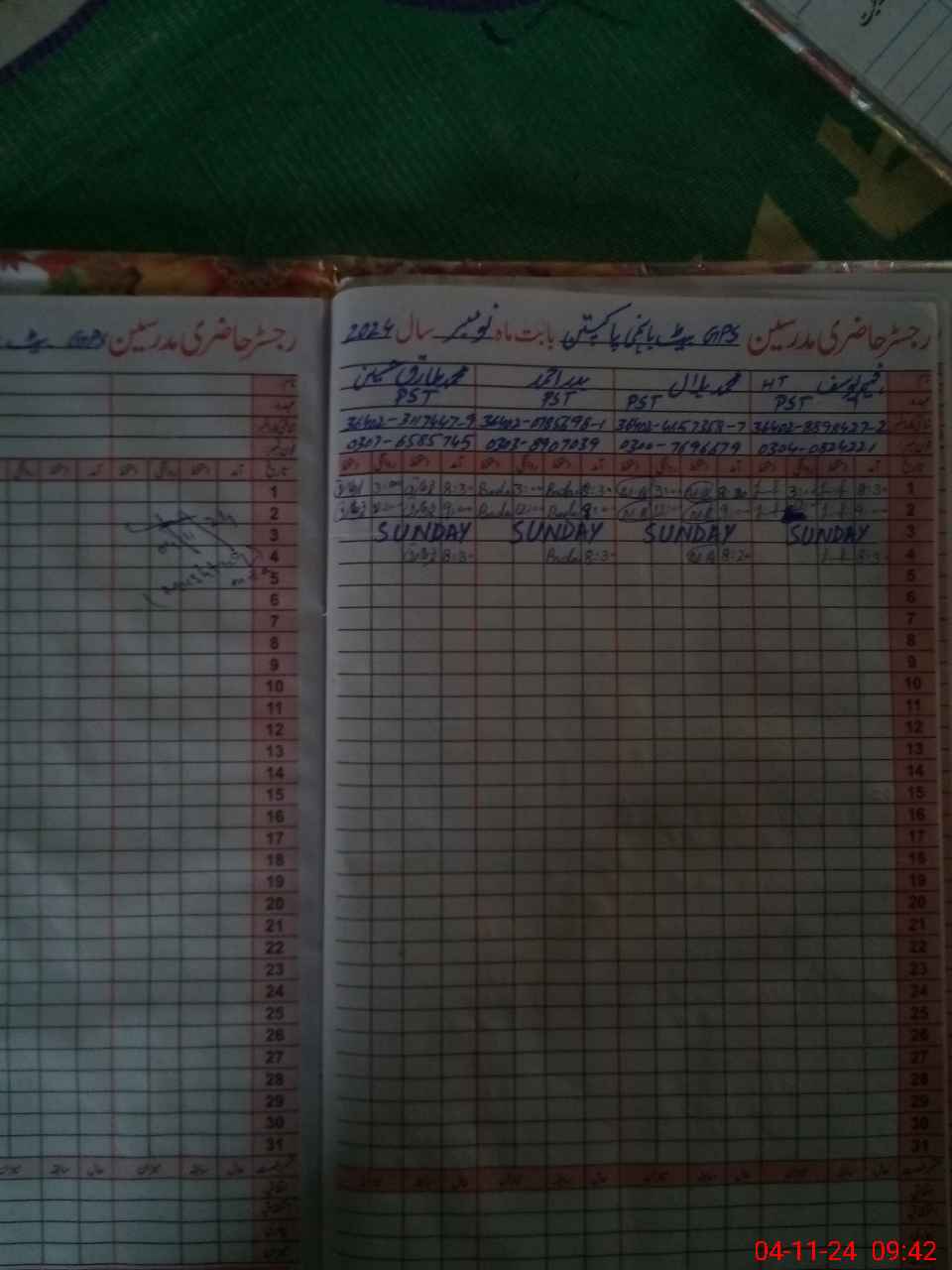 | CNIC | Full Name | Designation | R/C | Absence During Last Calender Month |