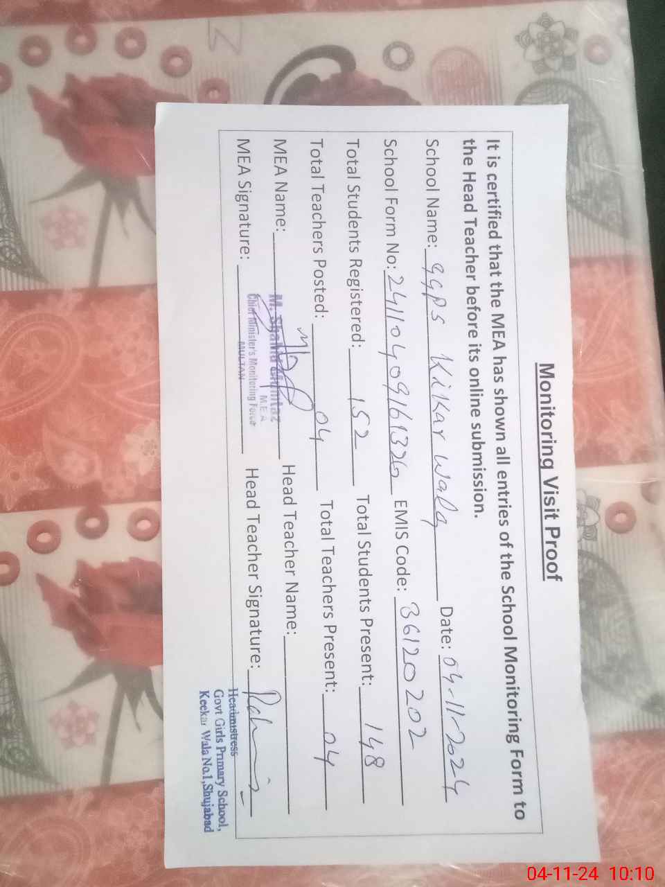 | EMIS Code: 36120202 | Name of School: GGPS KIKAR WALA BASTI KARIM ABAD | |||