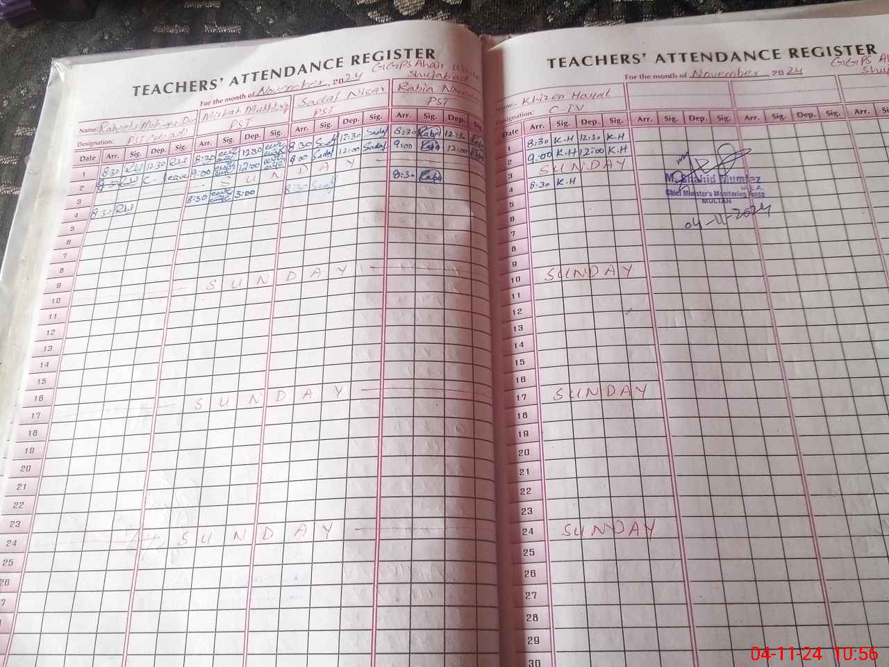 | CNIC | Full Name | Designation | R/C | Absence During Last Calender Month |