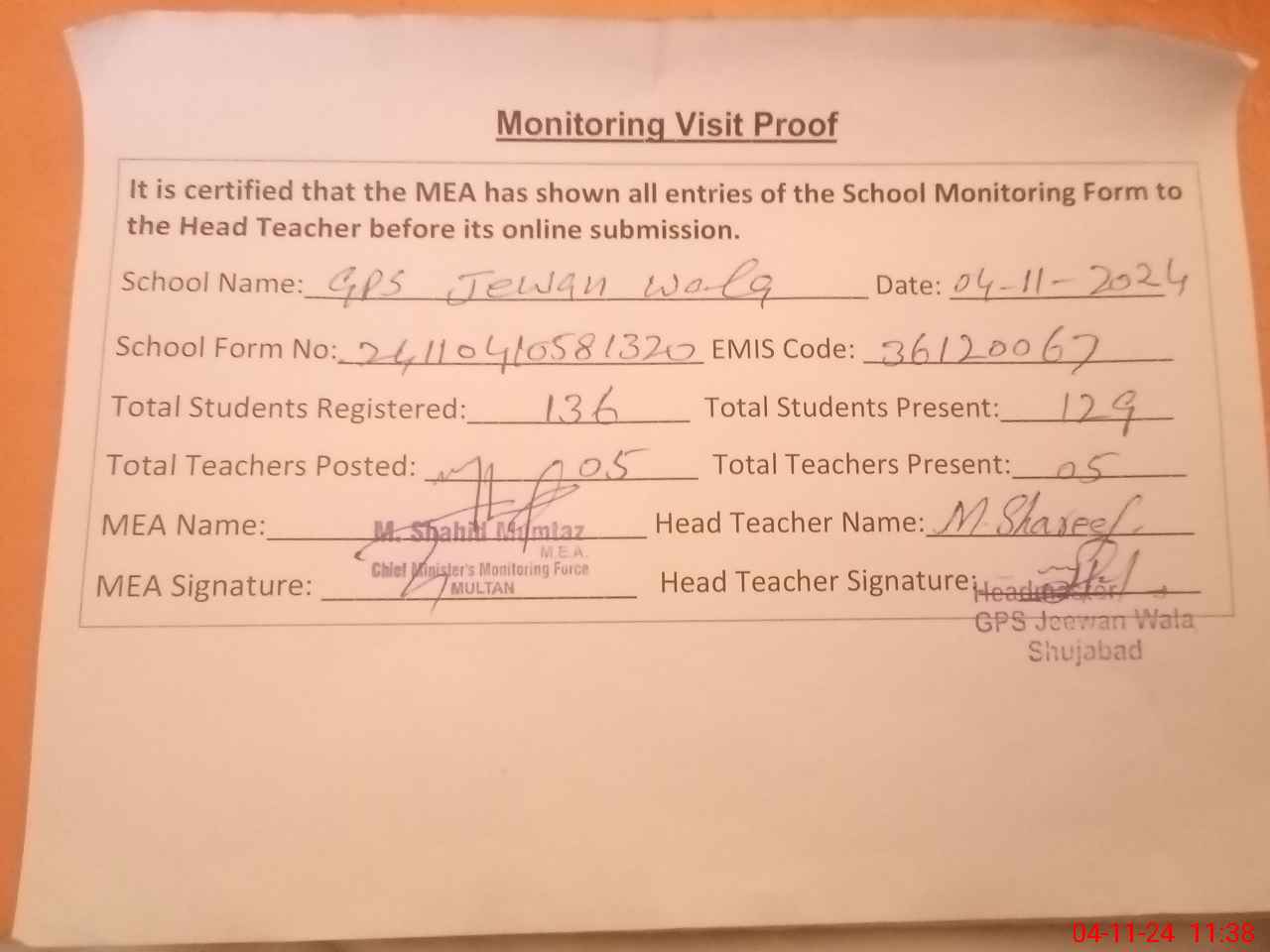 | EMIS Code: 36120067 | Name of School: GPS JIWAN WALA P/O SHUJABAD | |||