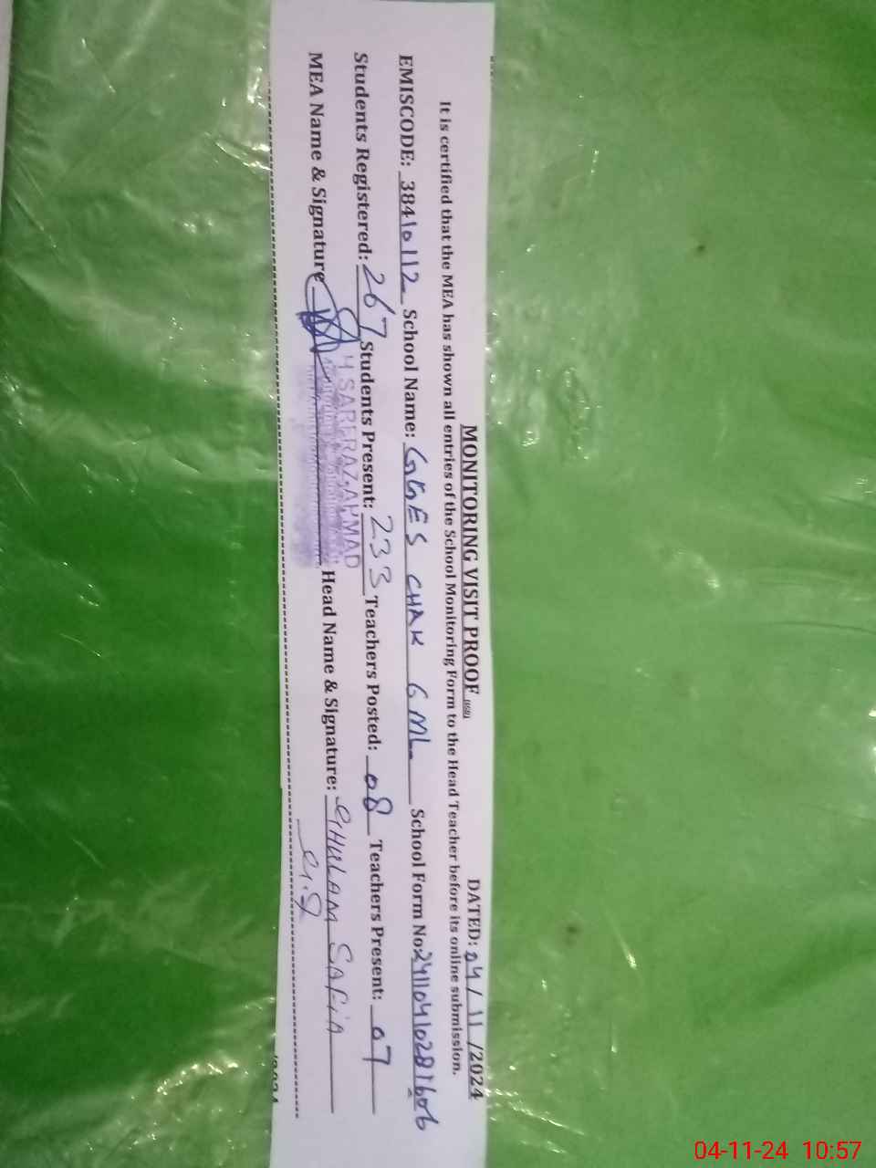 | EMIS Code: 38410112 | Name of School: GGES CHAK NO.6 ML | |||