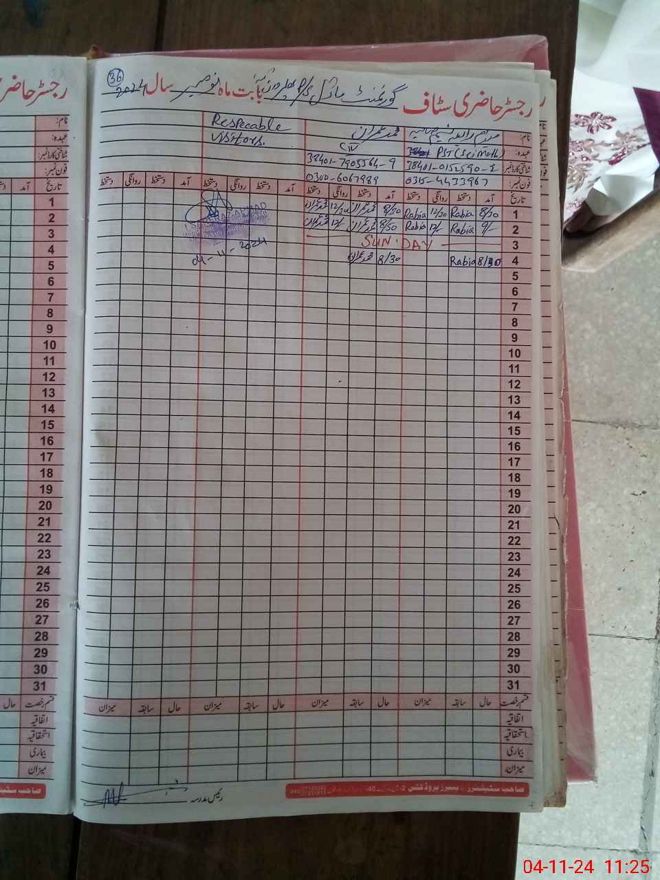 | CNIC | Full Name | Designation | R/C | Absence During Last Calender Month |