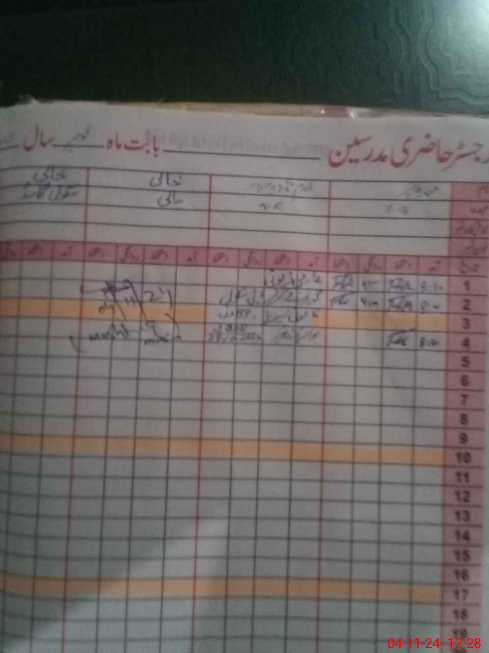 | CNIC | Full Name | Designation | R/C | Absence During Last Calender Month |