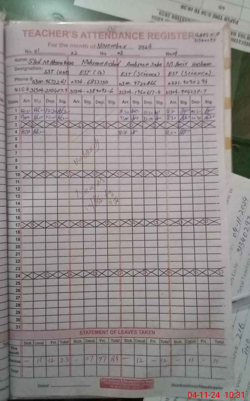 | Name: Sy**** MAh**** Ra**** Gi**** Designation: (School Headmaster's/Headmistress's) SST Phone/Cell Number: 03**** |