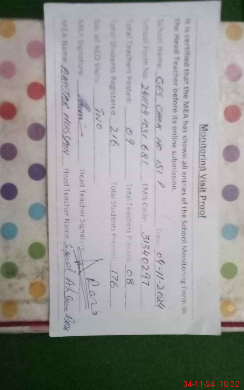 | EMIS Code: 31340297 | Name of School: GES CHAK NO 151/P | |||