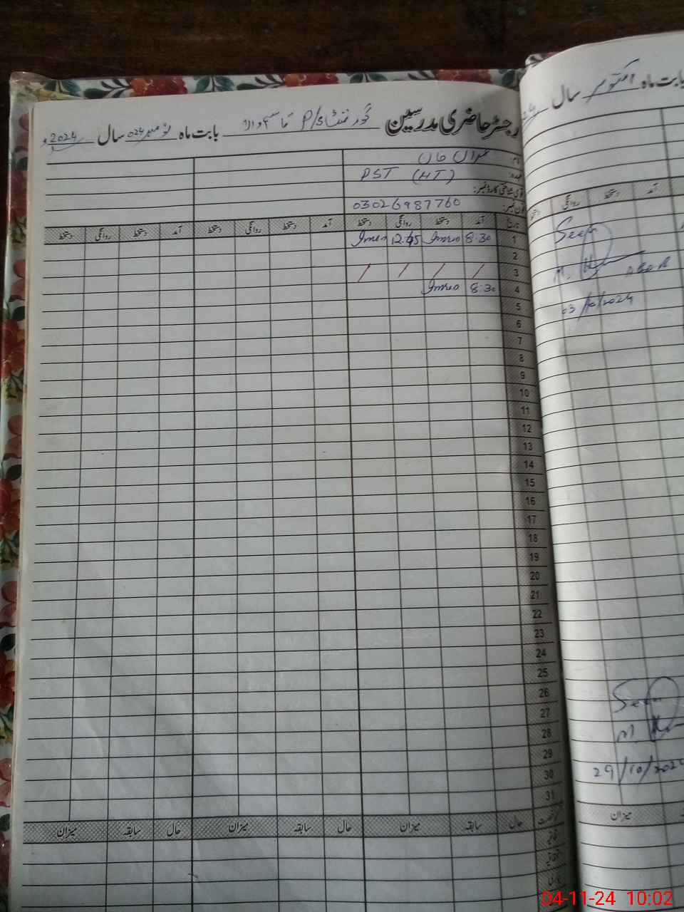 | Name: Im**** Kh**** Designation: (School Headmaster's/Headmistress's) PST Phone/Cell Number: 03**** |