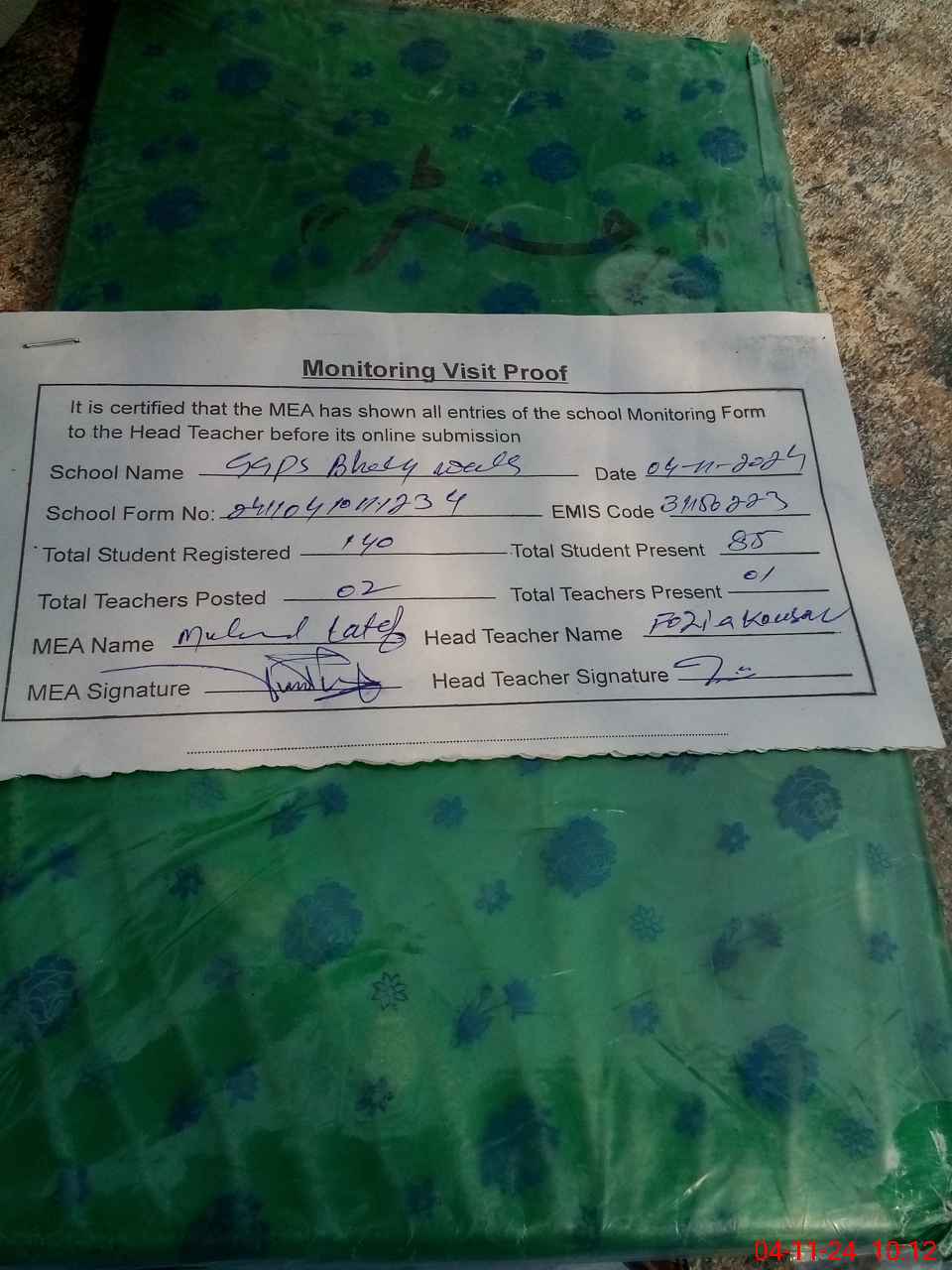 | EMIS Code: 31150223 | Name of School: GGPS BHOLAY WALA | |||