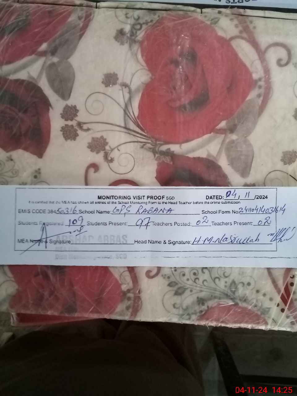 | EMIS Code: 38450316 | Name of School: GPS RABANA | |||