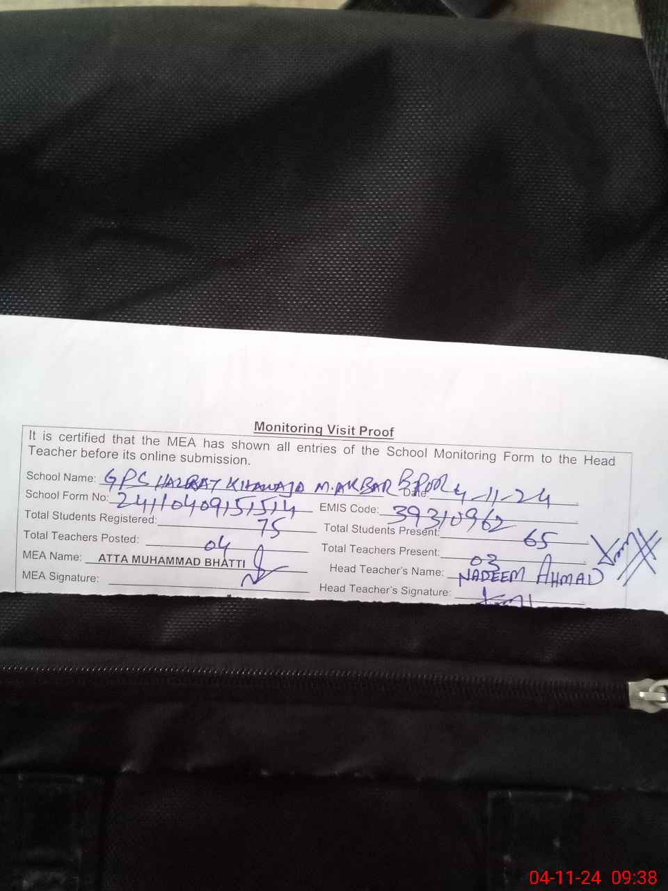 | EMIS Code: 39310962 | Name of School: GPS HAZRAT KHAWAJA M AKBAR BASIR PUR | |||