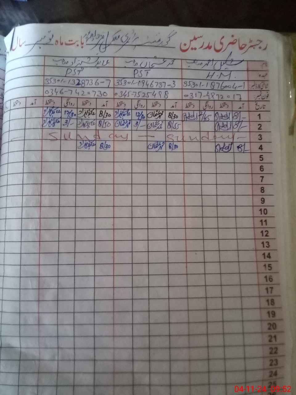 | Name: Mu**** Us**** Designation: (School Headmaster's/Headmistress's) PST Phone/Cell Number: 03**** |