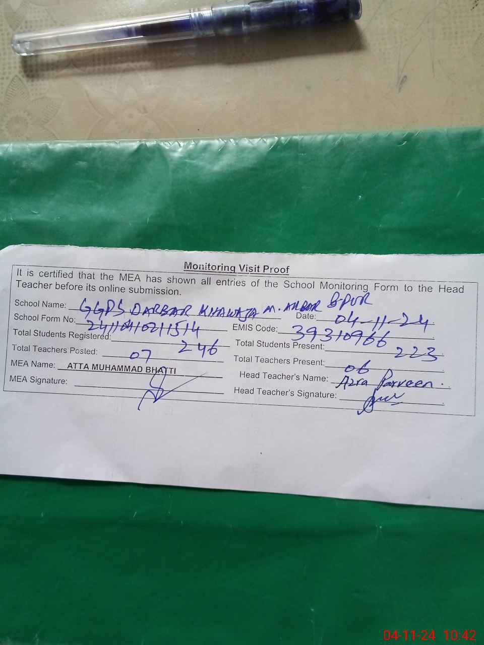 | EMIS Code: 39310966 | Name of School: GGPS DARBAR KHAWAJA M AKBAR BASIR PUR | |||
