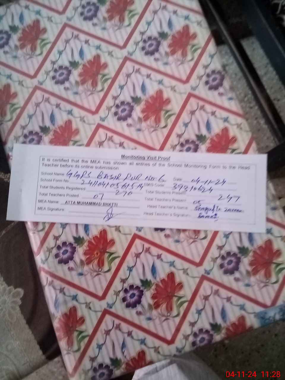 | EMIS Code: 39310624 | Name of School: GGPS BASIR PUR NO 6 | |||