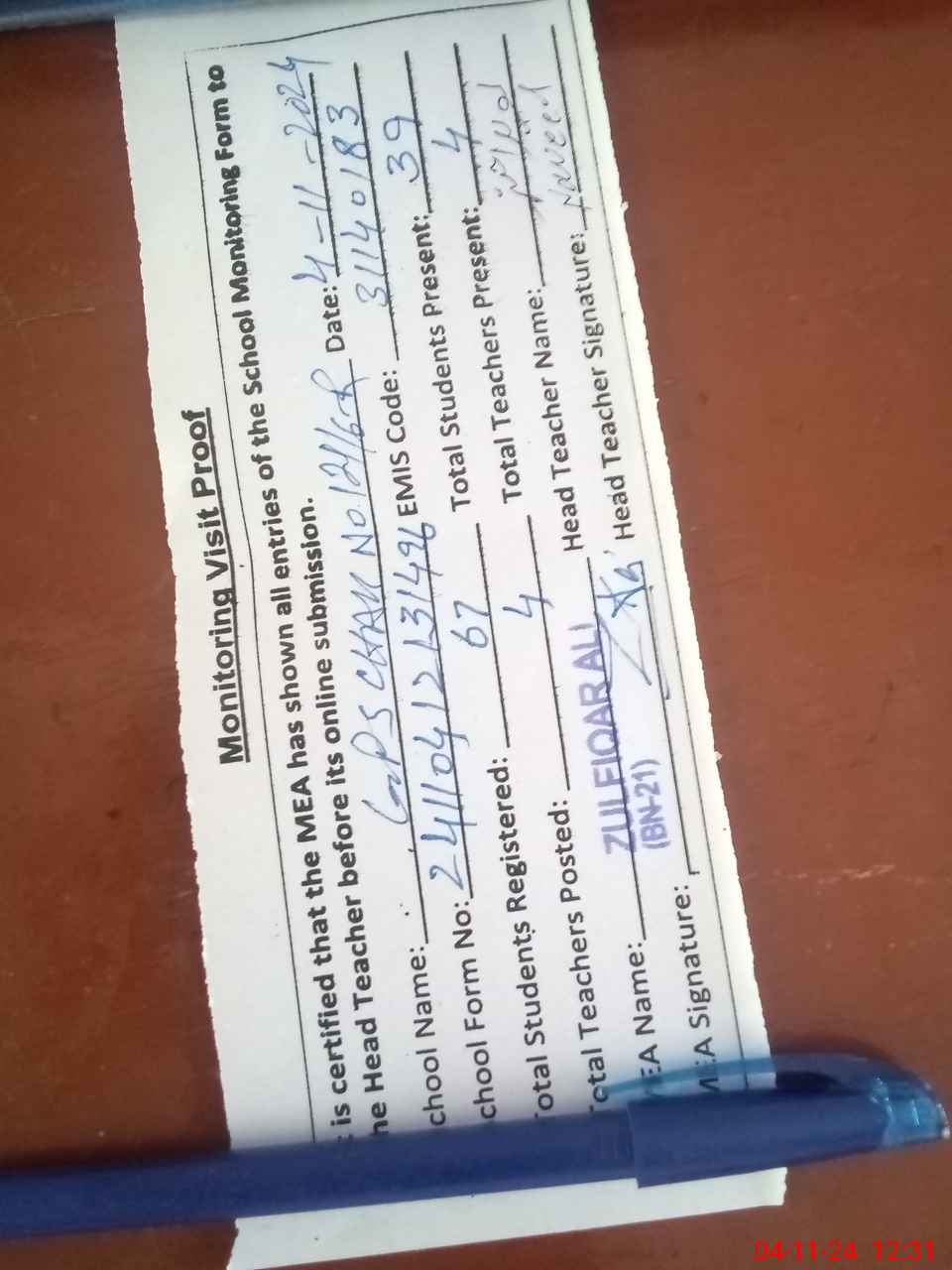 | EMIS Code: 31140183 | Name of School: GPS CHAK NO.121/6-R | |||