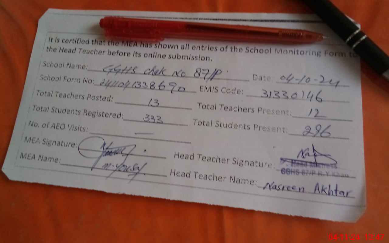 | Attendance Register | Head Teacher | MEA with School | Visit Proof |