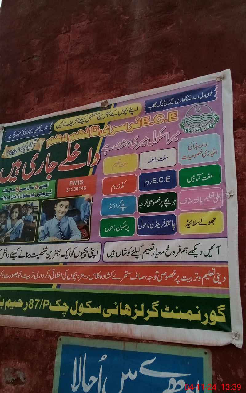 | EMIS Code: 31330146 | Name of School: GGHS CHAK NO. 87/P | |||