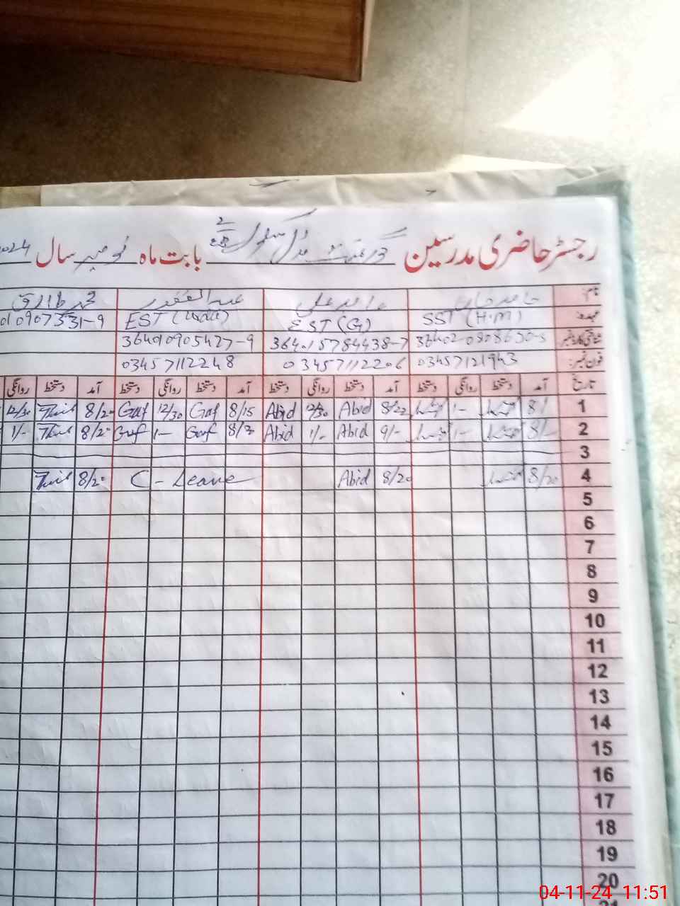 | Name: HA**** KH**** Designation: (School Headmaster's/Headmistress's) SST (GENERAL ) Phone/Cell Number: 03**** |