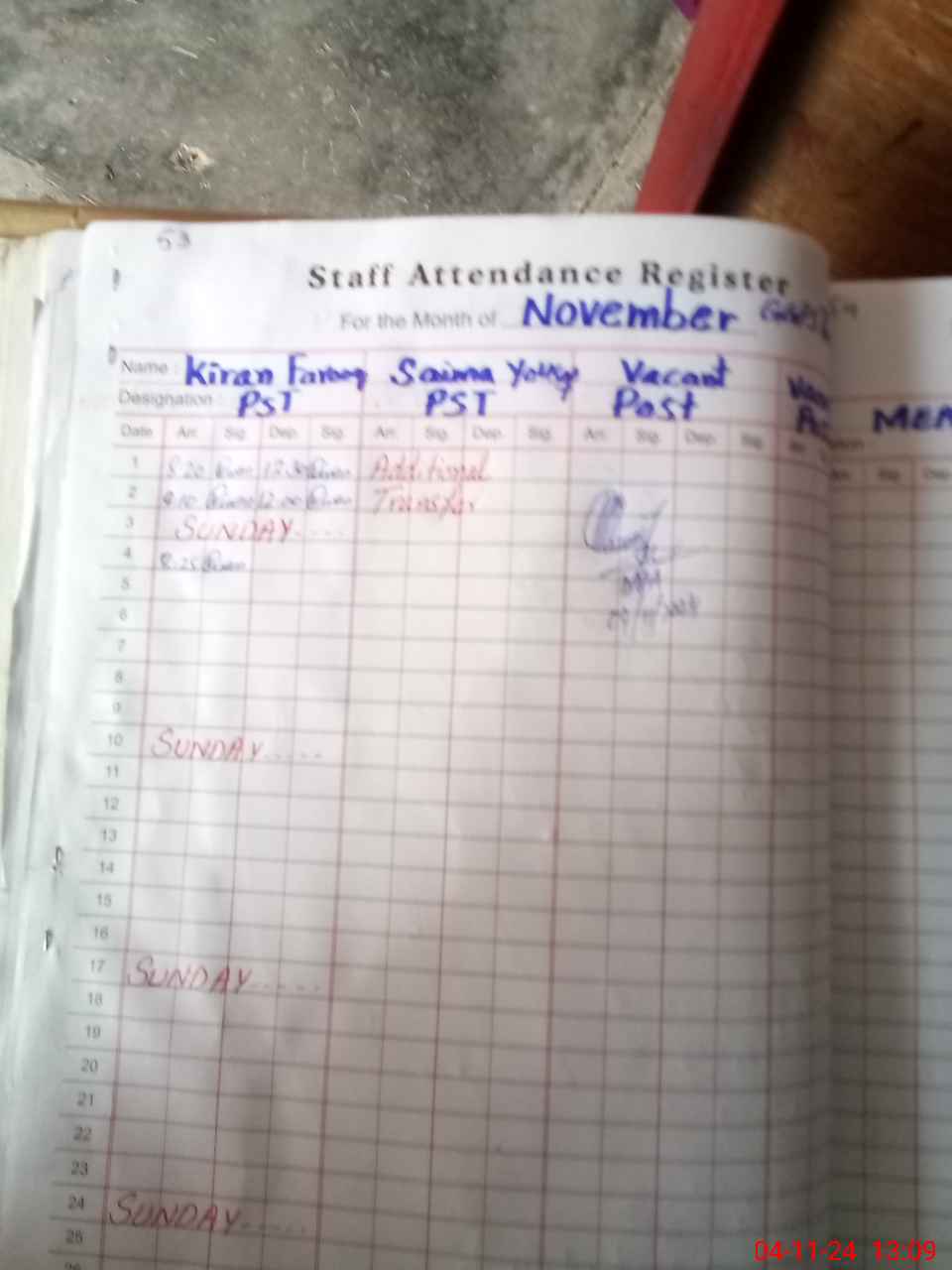 | Name: KI**** SH**** Designation: (School Headmaster's/Headmistress's) PST Phone/Cell Number: 03**** |