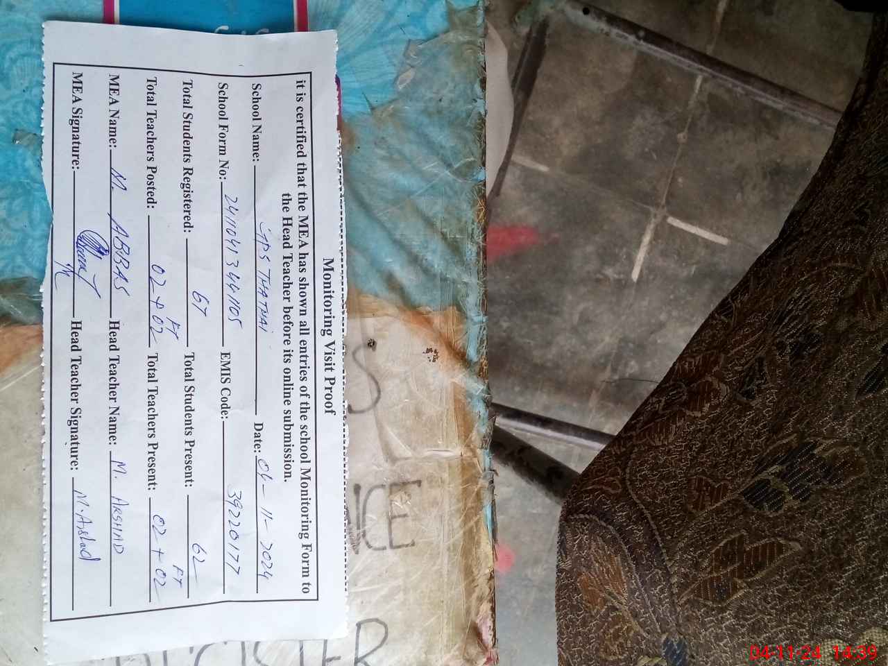 | EMIS Code: 39220177 | Name of School: GPS THATHAI P/O SAME TEH ARIF WALA | |||