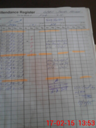 | CNIC | Full Name | Designation | R/C | Absence During Last Calender Month |