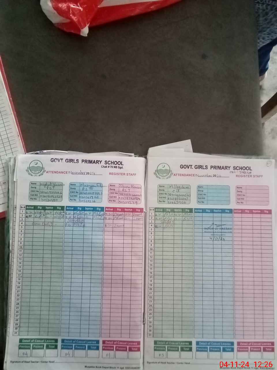 | CNIC | Full Name | Designation | R/C | Absence During Last Calender Month |