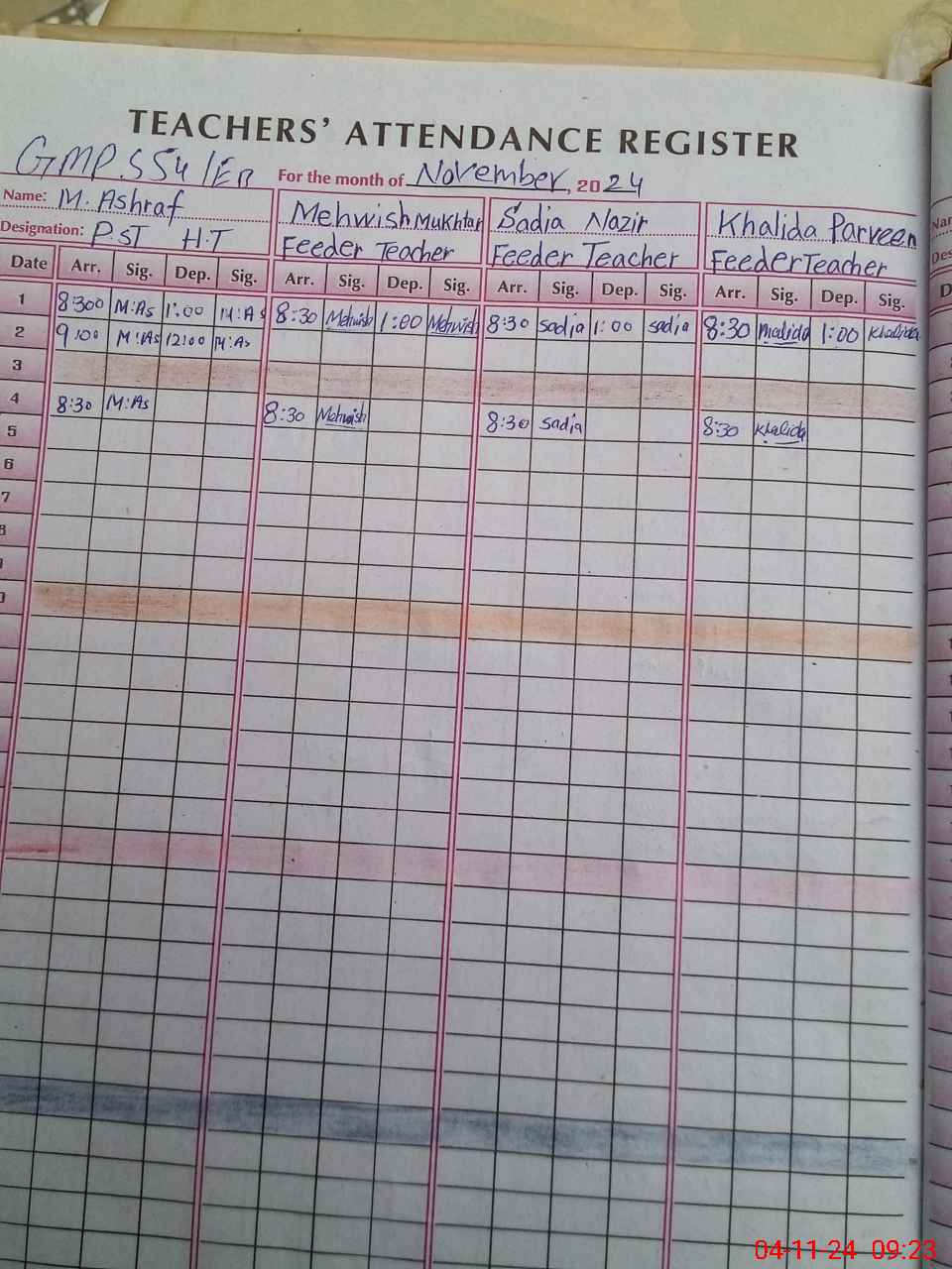 | Name: MU**** AS**** Designation: (School Headmaster's/Headmistress's) PST Phone/Cell Number: 03**** |