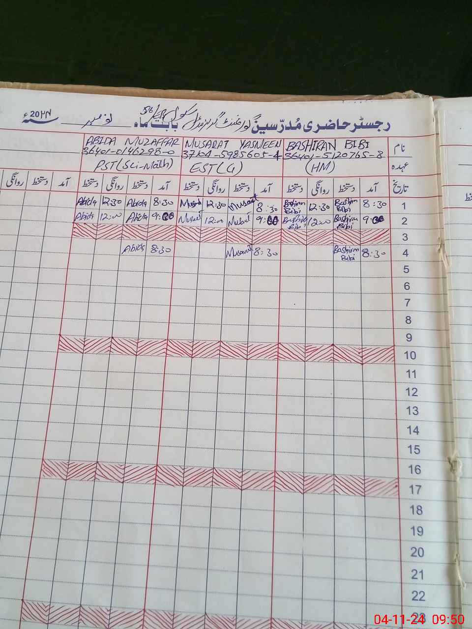 | Name: BA**** BI**** Designation: (School Headmaster's/Headmistress's) S.S.T.(GENERAL) Phone/Cell Number: 03**** |