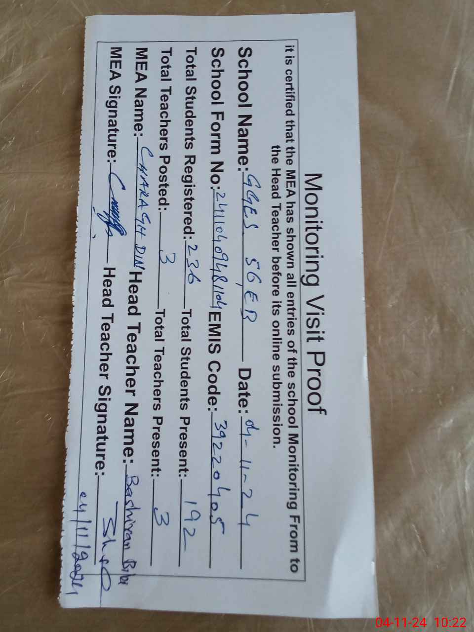 | EMIS Code: 39220405 | Name of School: GGES 56 EB PO DILU WALA BANGLA | |||