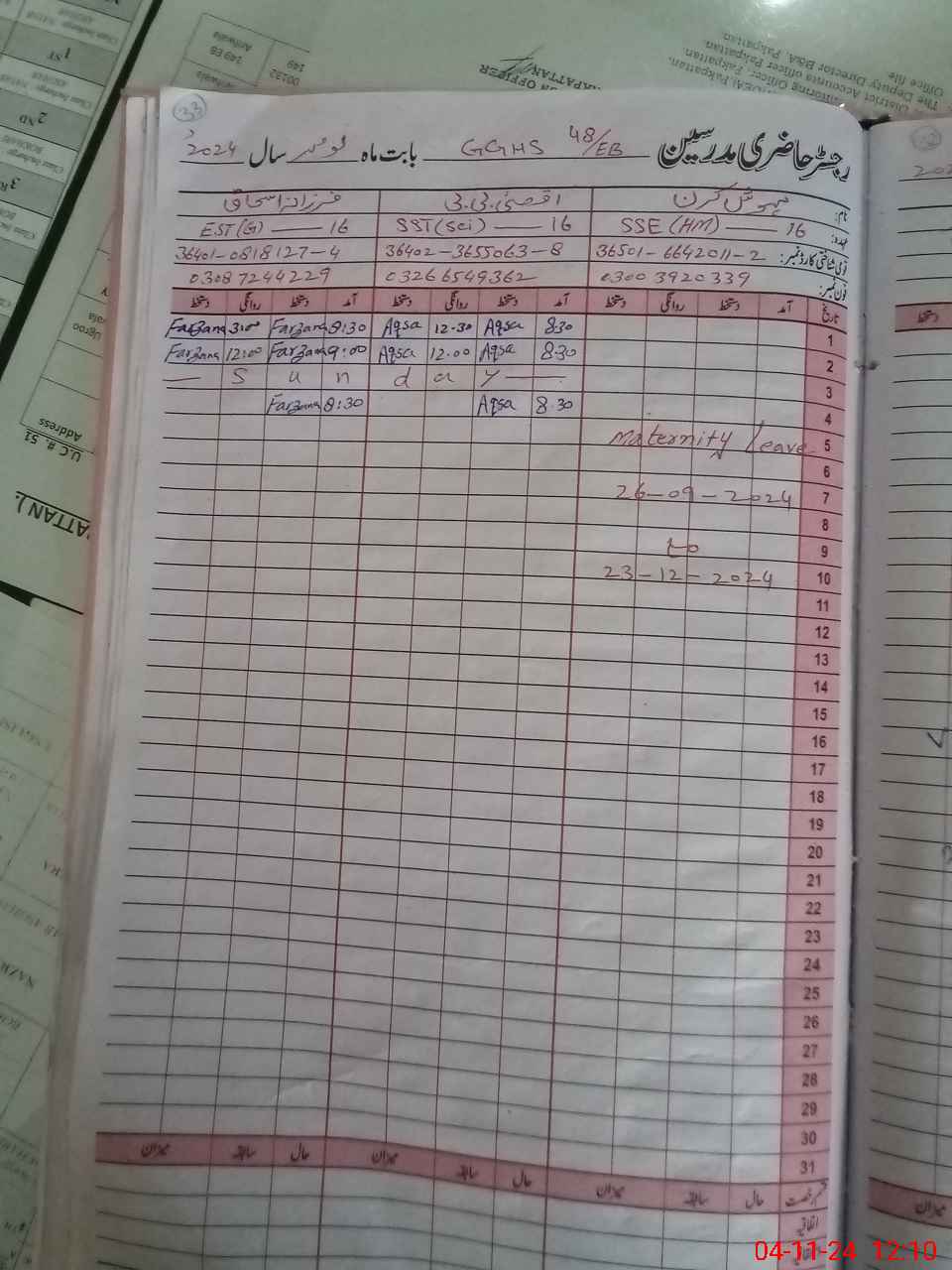 | 36**** | Me**** Ki**** | Contract | 31 | 0 | 0 | 31 | 0 | 0 | 0 | 0 | 0 | Maternity | |