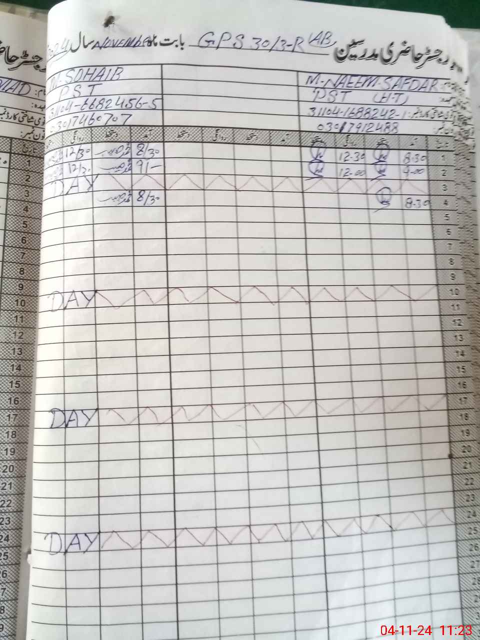 | CNIC | Full Name | Designation | R/C | Absence During Last Calender Month |