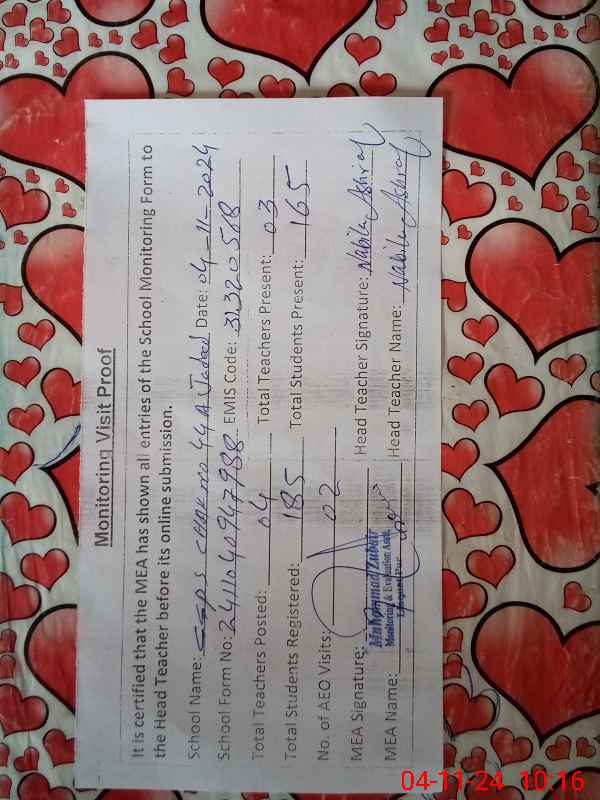 | EMIS Code: 31320568 | Name of School: GGPS CHAK 44/A JADEED | |||