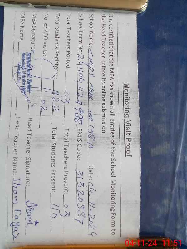 | EMIS Code: 31320587 | Name of School: GMPS CHAK NO.138/A | |||