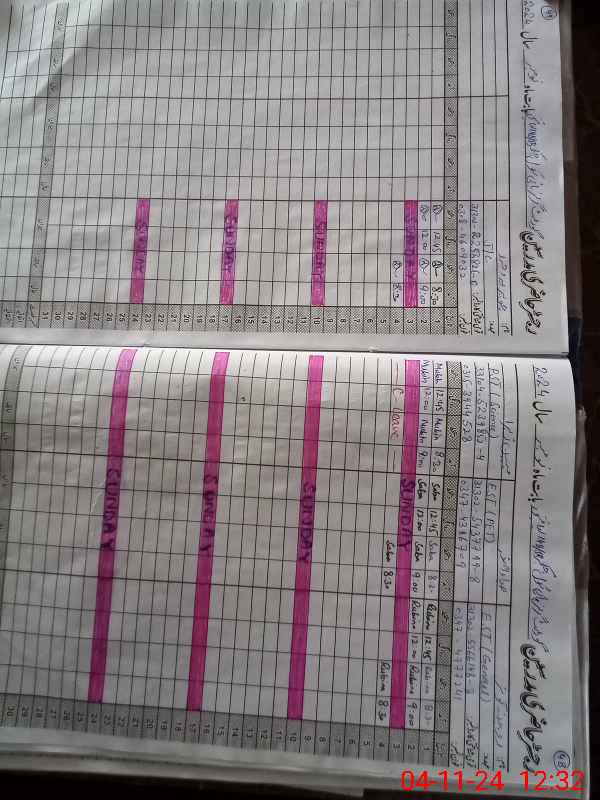 | CNIC | Full Name | Designation | R/C | Absence During Last Calender Month |