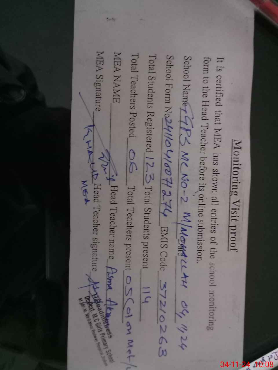 | EMIS Code: 37210263 | Name of School: GGPS MC NO. 2 MACHINE MOHALLAH | |||