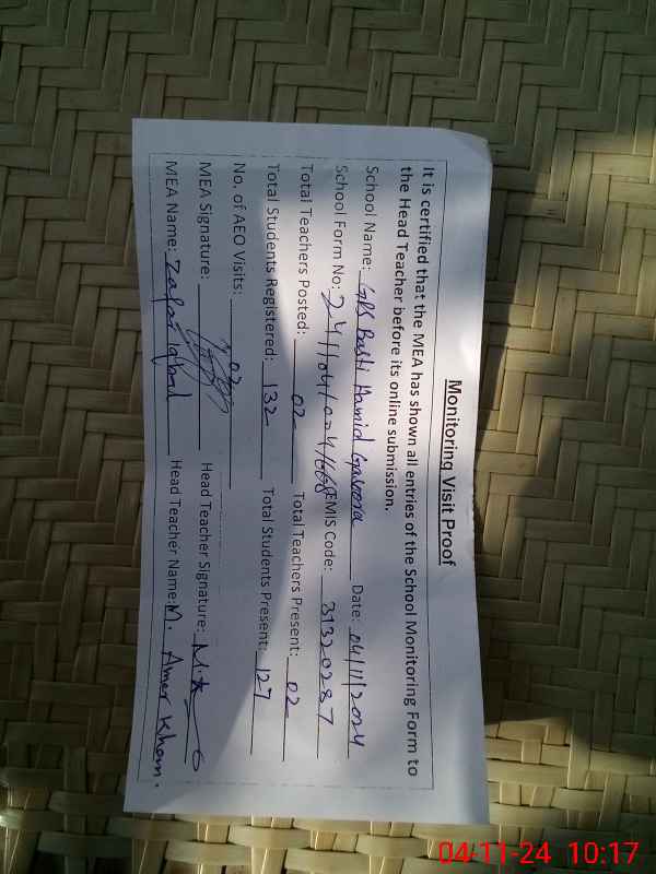 | EMIS Code: 31320287 | Name of School: GPS BASTI HAMID GASOORA | |||
