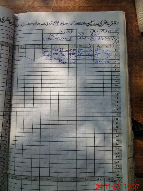 | Name: MU**** AA**** KH**** Designation: (School Headmaster's/Headmistress's) PST Phone/Cell Number: 03**** |