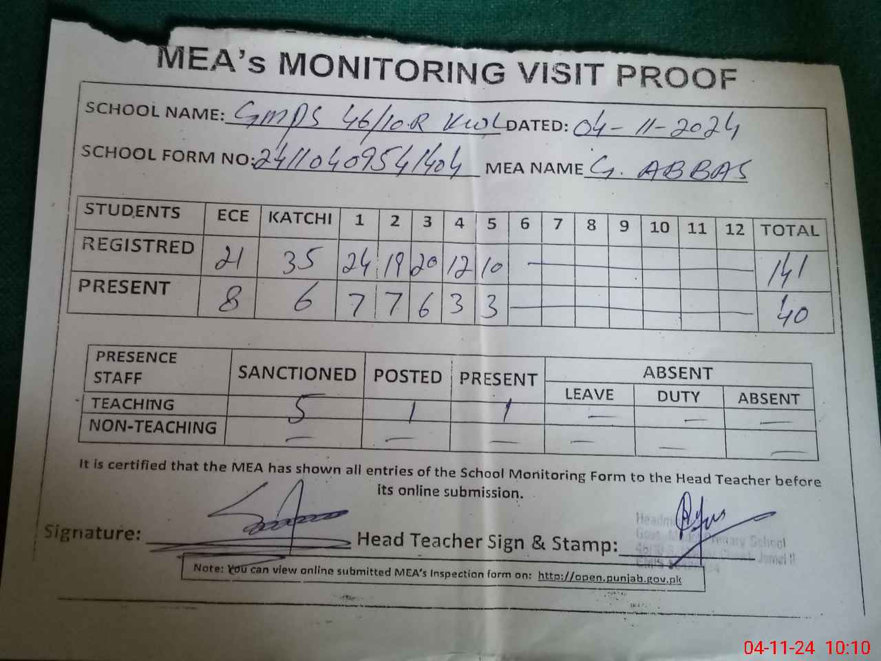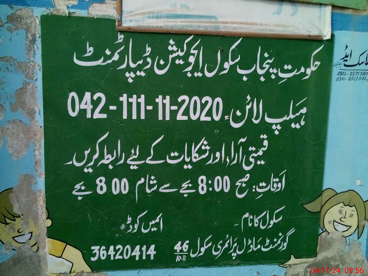 | EMIS Code: 36420414 | Name of School: GMPS 46/10-R, KHANEWAL | |||