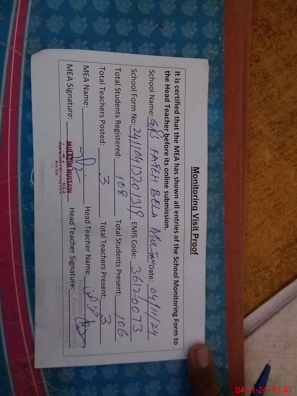 | EMIS Code: 36120073 | Name of School: GPS FATEH BELLA P/O & TEH.SHUJABAD | |||