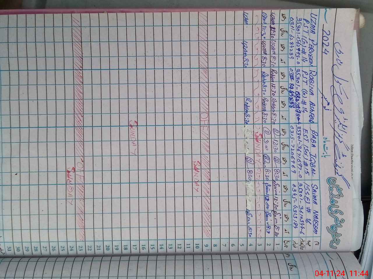 | Leave | Duty | Absent | Maternity | Medical | Ex- Pak |