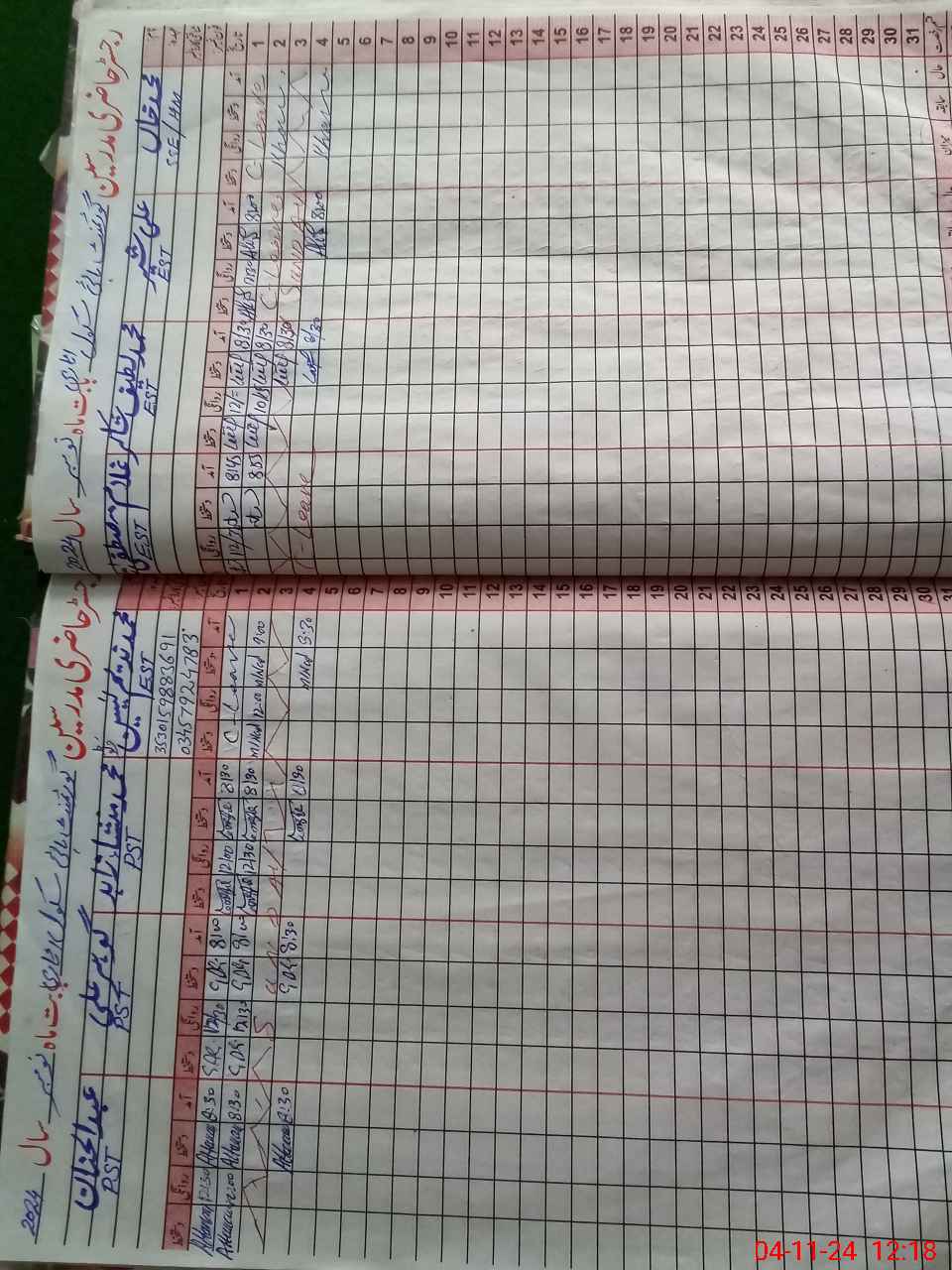 | CNIC | Full Name | Designation | R/C | Absence During Last Calender Month |