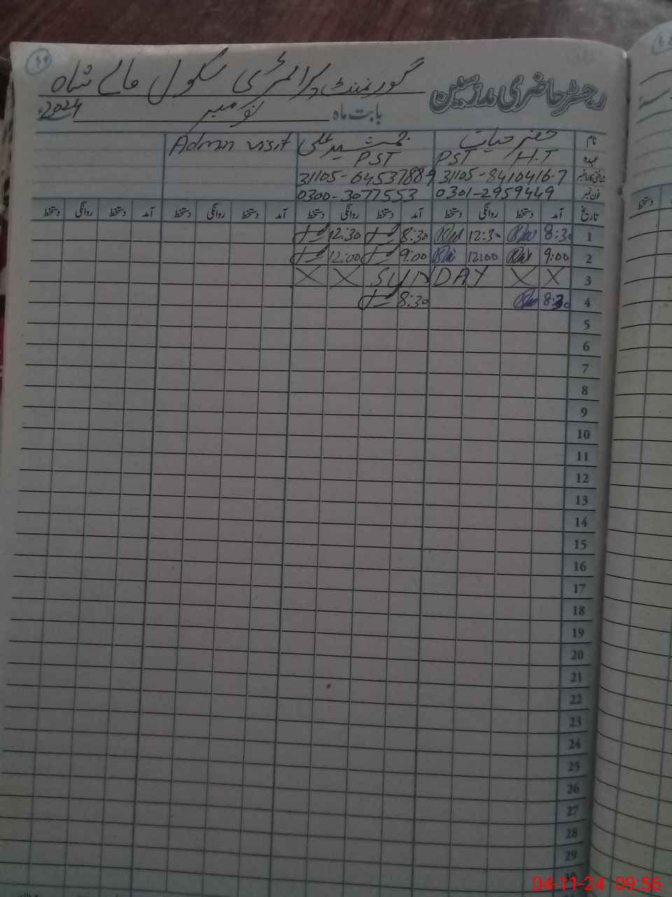 | Name: KH**** HA**** Designation: (School Headmaster's/Headmistress's) PST Phone/Cell Number: 03**** |
