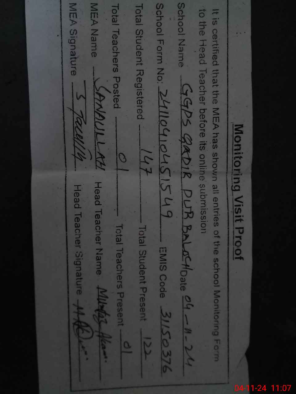 | EMIS Code: 31150376 | Name of School: GGPS QADIR PUR | |||