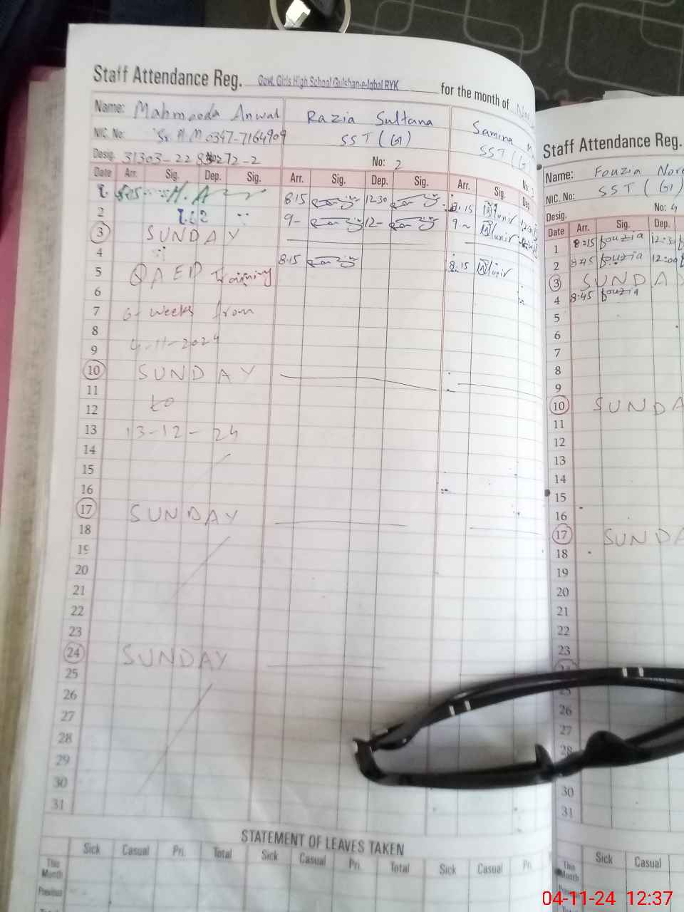 | Leave | Duty | Absent | Maternity | Medical | Ex- Pak |
