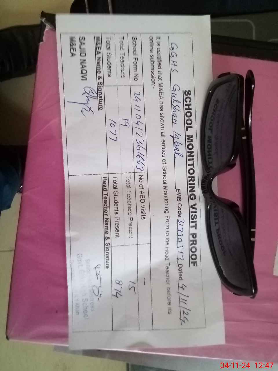 | Attendance Register | Head Teacher | MEA with School | Visit Proof |