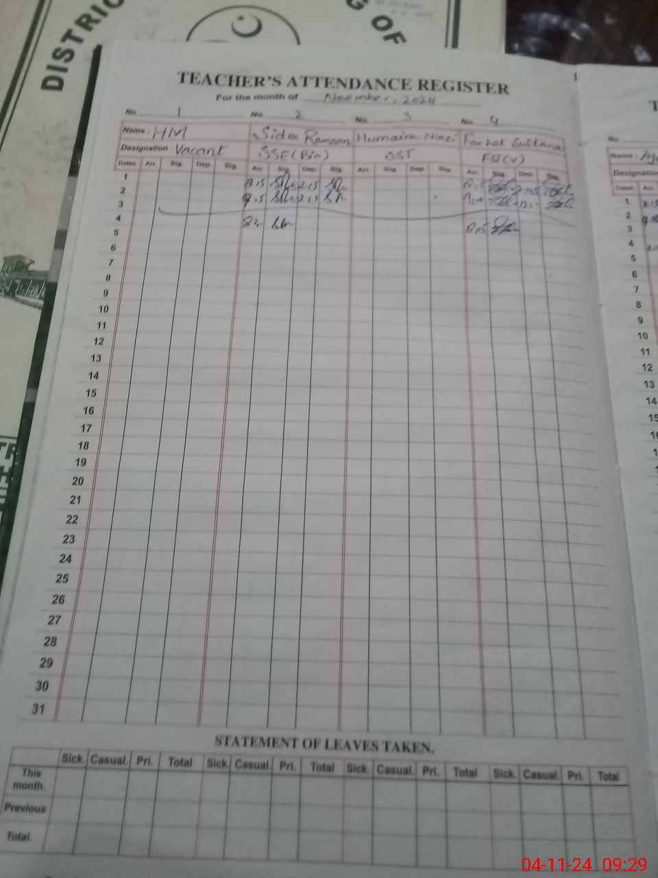 | 36**** | Hu**** Ni**** | 1 | 0 | 0 | 26 | 0 | 0 | 0 | 0 | 0 | 0 | Absent (Un-Authorized) | |