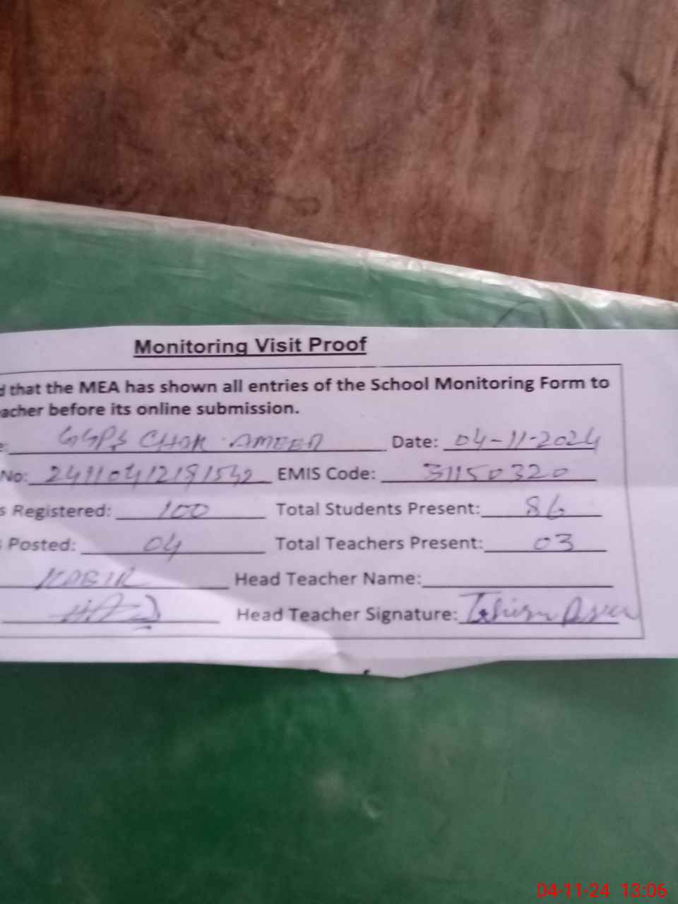| EMIS Code: 31150320 | Name of School: GGPS CHAK AMEER | |||